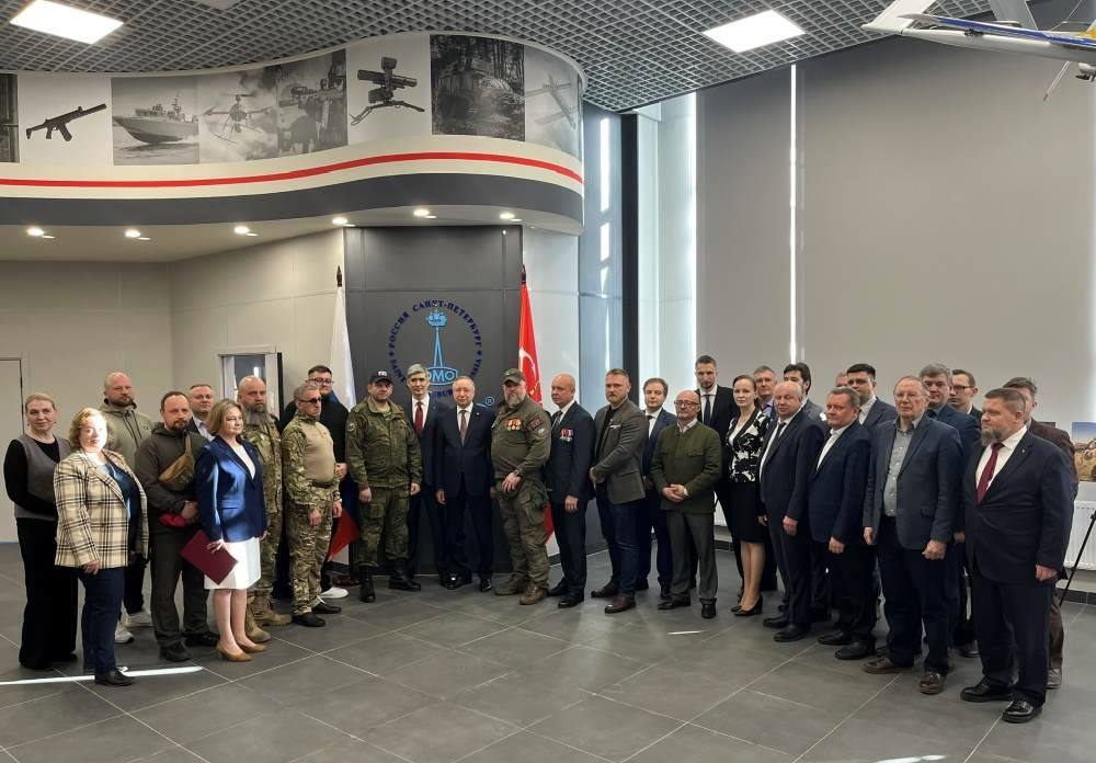 Губернатор Санкт–Петербурга вручил Центру статуэтку Александра Невского — покровителя Санкт–Петербурга, а руководителю «СВОей Мастерской», участнику СВО Роману Кощееву — памятный знак за участие в СВО от благодарного Санкт–Петербурга.