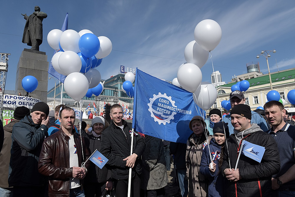 Работники завода имени Калинина, члены Свердловского регионального отделения Союза машиностроителей России приняли участие в демонстрации, посвященной Дню Международной солидарности трудящихся, Празднику Весны и Труда.