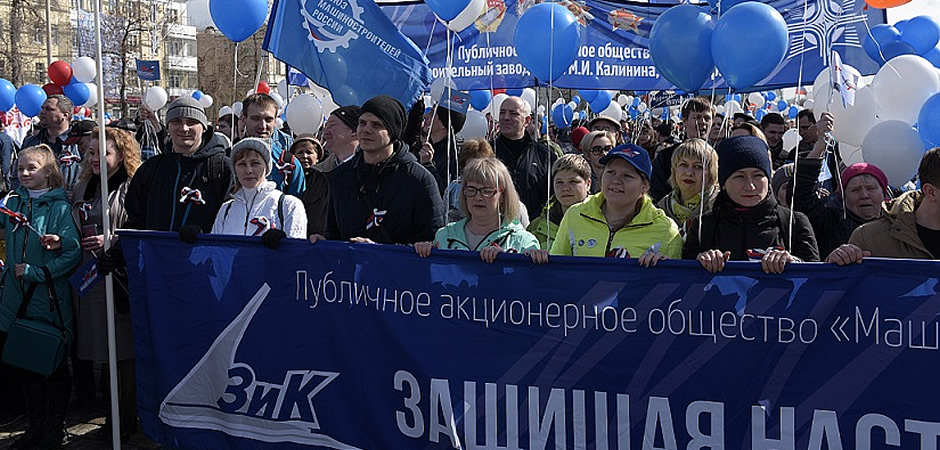 Одной из самых сплоченных и многочисленных была колонна завода имени Калинина. В ее рядах – генеральный директор ПАО «МЗИК», председатель Свердловского РО Союза машиностроителей России Николай Клейн, представители администрации предприятия, руководства и коллективов всех цехов и отделов, профсоюзные и молодежные лидеры, ветераны ЗиКа.