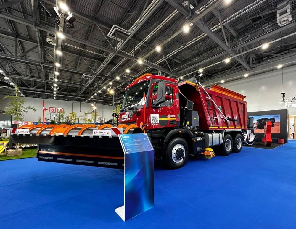 На выставке также продемонстрированы автомобильный кран-манипулятор на шасси КАМАЗ-65658 и комбинированная дорожная машина на базе самосвала КАМАЗ-6595.