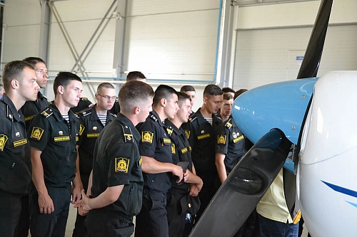 С большим интересом курсанты осмотрели производство изделий для космической отрасли, в частности участок изготовления элементов десантного модуля международного космического аппарата «ЭкзоМарс-2020», крупногабаритных конструкций головного обтекателя ракеты-носителя «Протон-М». Также им был представлен проект создания самолета для проведения авиахимработ Т-500 с цельнокомпозитным планером, к серийному выпуску которого готовится предприятие.