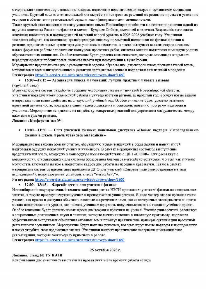 Важным событием Международной выставки «Учебная Сибирь–2025» станет слет учителей физики — панельная дискуссия «Новые подходы к преподаванию физики в школе и роль установок мегасайенс», посвященная обмену опытом и обсуждению новых тенденций в образовании, поиску путей подготовки будущих поколений ученых и инженеров. В рамках мероприятия состоится выступление представителей вузов, входящих в консорциум по взаимодействию с ЦКП «СКИФ». Напомним, что сама идея консорциума и инициатива по его созданию также принадлежит Новосибирскому государственному техническому университету НЭТИ.