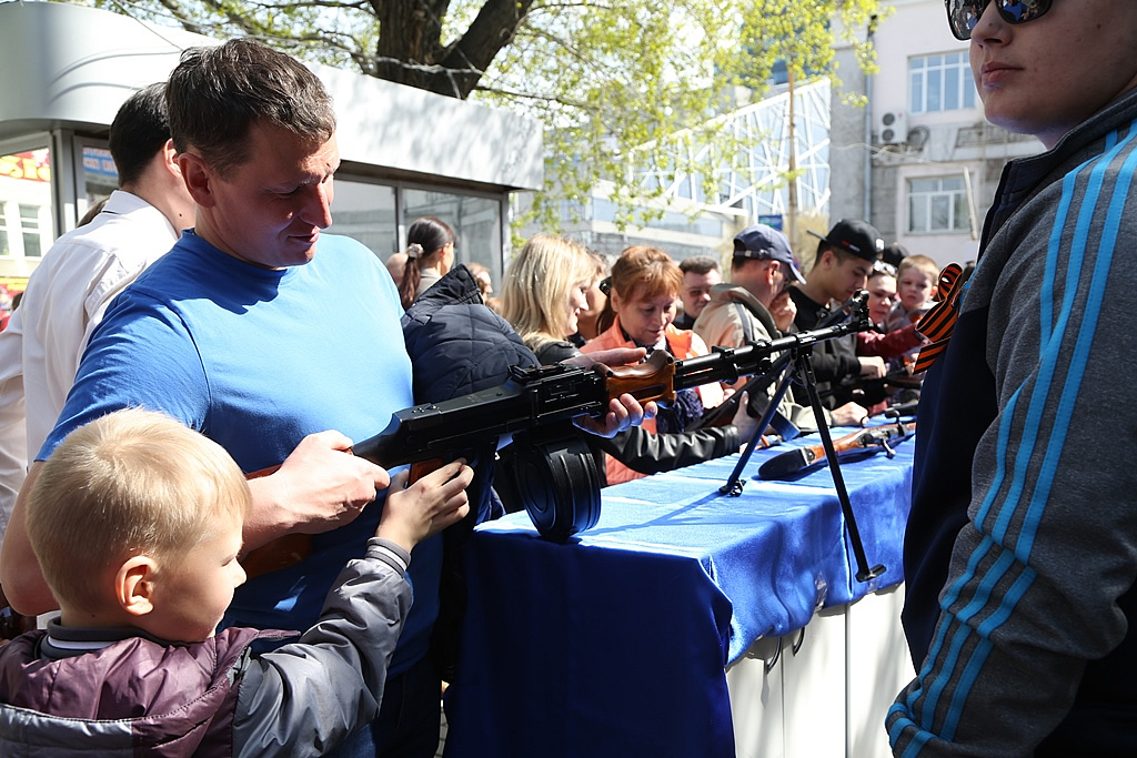 Горожане смогли подержать в руках оружие на выставке около университета, поучаствовать в интерактивных площадках, попробовать настоящей гречневой каши на полевой кухне.