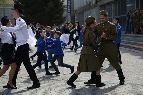 9 мая на площади перед зданием Уральского государственного экономического университета 150 пар вальсировали под мелодии знаменитых советских композиций.