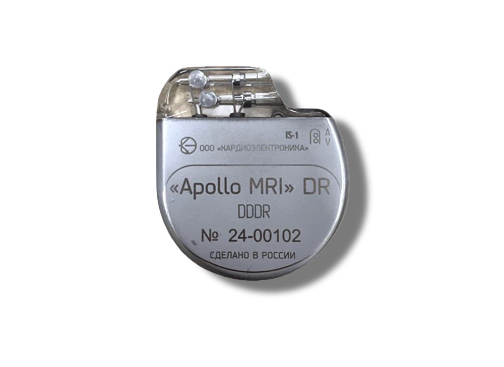 МРТ-совместимый электрокардиостимулятор Apollo MRI производства компании «Кардиоэлектроника» имплантируется под кожу и постоянно отслеживает частоту и регулярность сердечного ритма. При этом учитываются индивидуальные физиологические особенности пациента. Благодаря тому, что устройство может накапливать данные о работе сердца, врач получает объективную картину состояния пациента и может корректировать лечение.