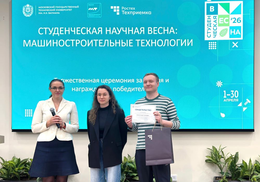 Компания «РТ-Техприемка» Госкорпорации Ростех (входит в СоюзМаш России) наградила победителей 20-й юбилейной Всероссийской конференции «Студенческая научная весна: Машиностроительные технологии». Мероприятие прошло в МГТУ имени Н.Э. Баумана и объединило молодые таланты со всей страны. Студенты и выпускники ведущих инженерных вузов России представили более 300 исследовательских работ в области современного машиностроения.