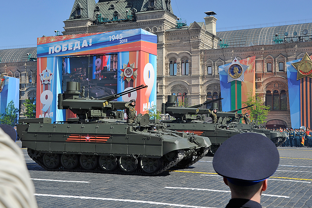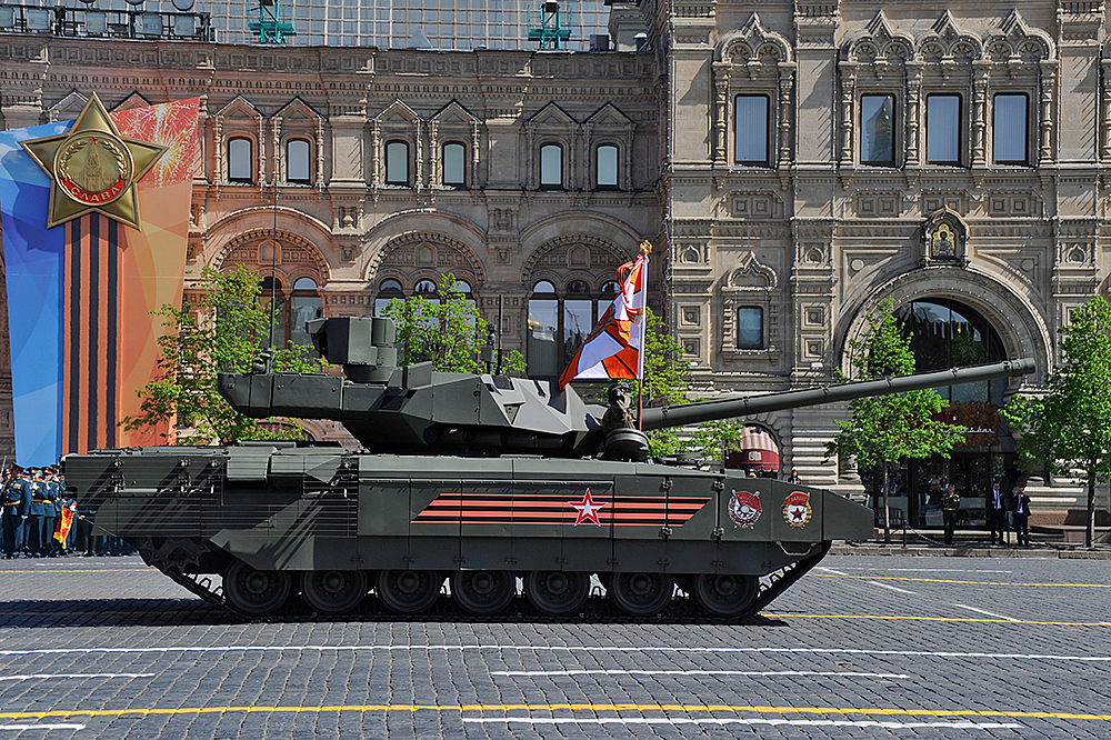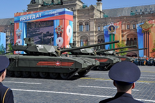 Также в торжественном шествии, приняли участие современные танки УВЗ - четыре «Арматы» и три Т-72БЗ. По Красной Площади техника УВЗ прошла без замечаний и показала себя красиво.