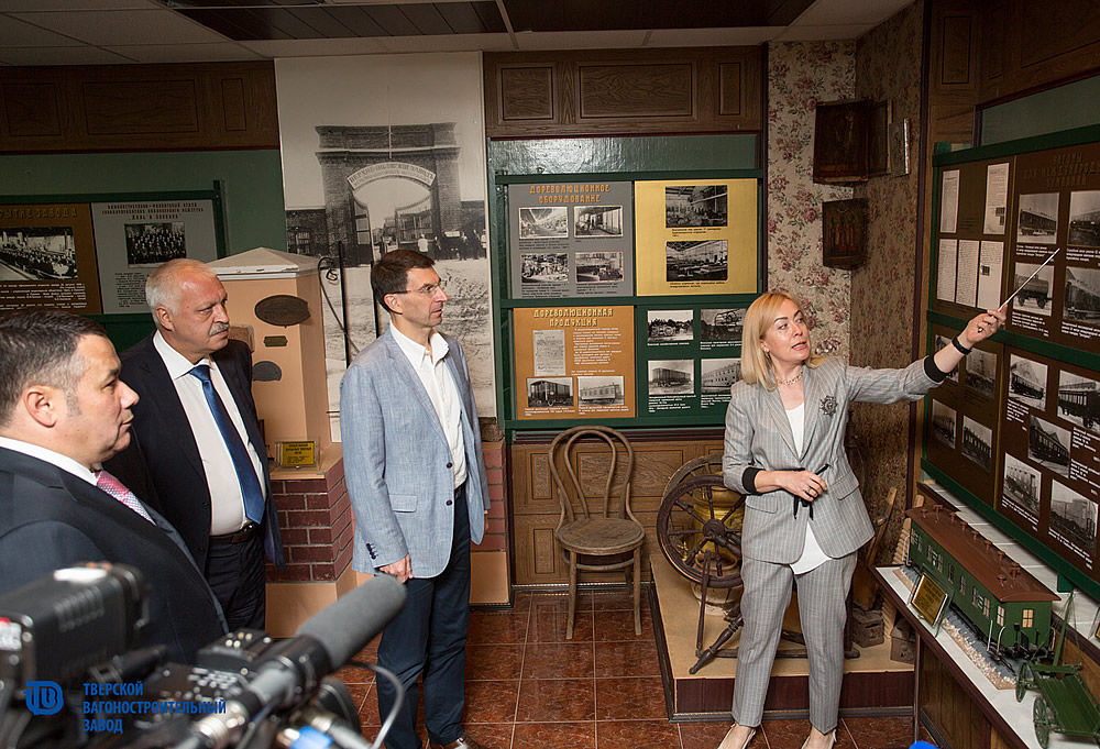 В сопровождении губернатора Тверской области Игоря Рудени и генерального директора ОАО «ТВЗ», председателя Тверского регионального отделения Союза машиностроителей России Андрея Соловья Игорь Щеголев посетил заводской музей. Затем гости направились на производство. В рамно-кузовном цехе Андрей Соловей рассказал о деятельности завода с 2008 по 2018 годы. На стендах с диаграммами было наглядно видно, как по годам менялись объемы реализации продукции, выручки, налоговых отчислений, а также численность работников и уровень их зарплаты.