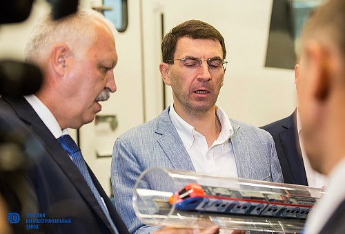 В вагоносборочном цехе Игорю Олеговичу продемонстрировали несколько образцов современной продукции завода. Первым делом он осмотрел электропоезд «Иволга», поинтересовавшись географией поставщиков комплектующих, и попутно оценив удобство кресел. Затем гости перешли к двухэтажной технике – осмотрели купейный вагон и вагон-ресторан.