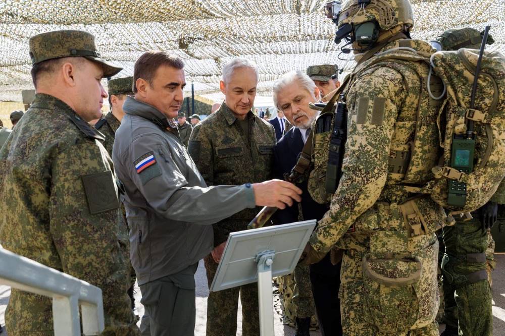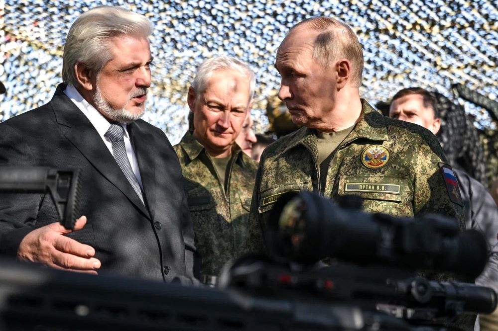 Владимира Путина сопровождали глава Минобороны России Андрей Белоусов, помощник президента, секретарь Госсовета, заместитель председателя СоюзМаш России Алексей Дюмин и заместитель министра обороны Юнус-Бек Евкуров.