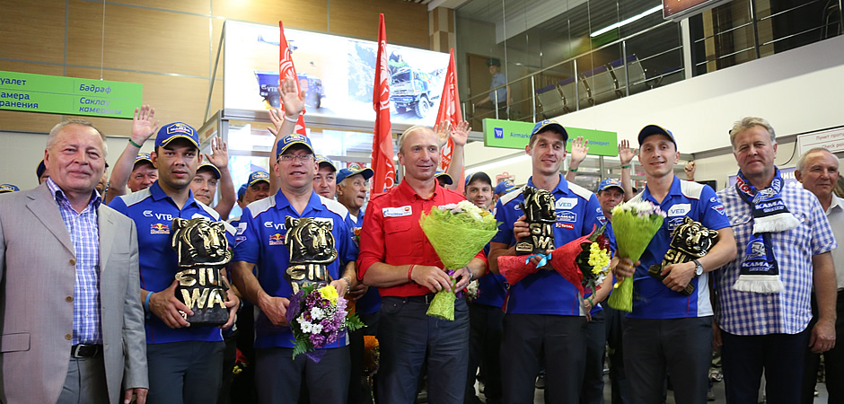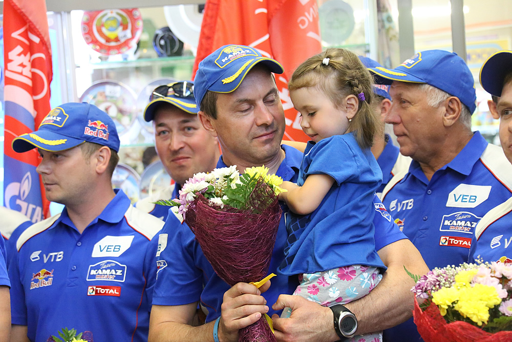 Встретить триумфаторов приехали родственники, журналисты, активисты общественных организаций, многочисленные болельщики, а также первые лица города. Участниками мероприятия стали исполнительный директор «КАМАЗа» Юрий Герасимов и руководитель исполнительного комитета Набережных Челнов Ринат Абдуллин, поздравившие команду «КАМАЗ-мастер» с яркой победой в ралли-рейде. Камазовцы привезли на родину два кубка в виде головы белого тигра – символы «Шёлкового пути» в 2016 году.