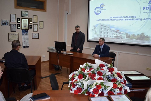 16 декабря на Алтайском приборостроительном заводе «Ротор» состоялось торжественное награждение сотрудников. Мероприятие открыли генеральный директор завода «Ротор», председатель Алтайского регионального отделения Союза машиностроителей России Максим Коновалов и министр промышленности и энергетики Алтайского края Вячеслав Химочка.