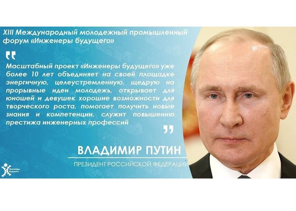 Отрадно, что эти крепкие трудовые традиции сегодня достойно продолжаются. Вижу в этом заслугу и масштабного проекта «Инженеры будущего», который уже более десяти лет объединяет на своей площадке энергичную, целеустремлённую, щедрую на прорывные идеи молодёжь, открывает для юношей и девушек хорошие возможности для творческого роста, помогает получить новые знания и компетенции, служит повышению престижа инженерных профессий. И конечно, важно, что форум проходит при широкой поддержке надёжных и авторитетных партнёров: крупных компаний, машиностроительных предприятий, ведущих технических вузов, общественных организаций России.