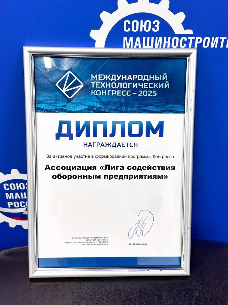 За консолидацию усилий в решении стратегических задач промышленного развития страны и организацию конструктивных обсуждений работа Союза машиностроителей и Лиги была отмечена дипломами партнеров Конгресса.