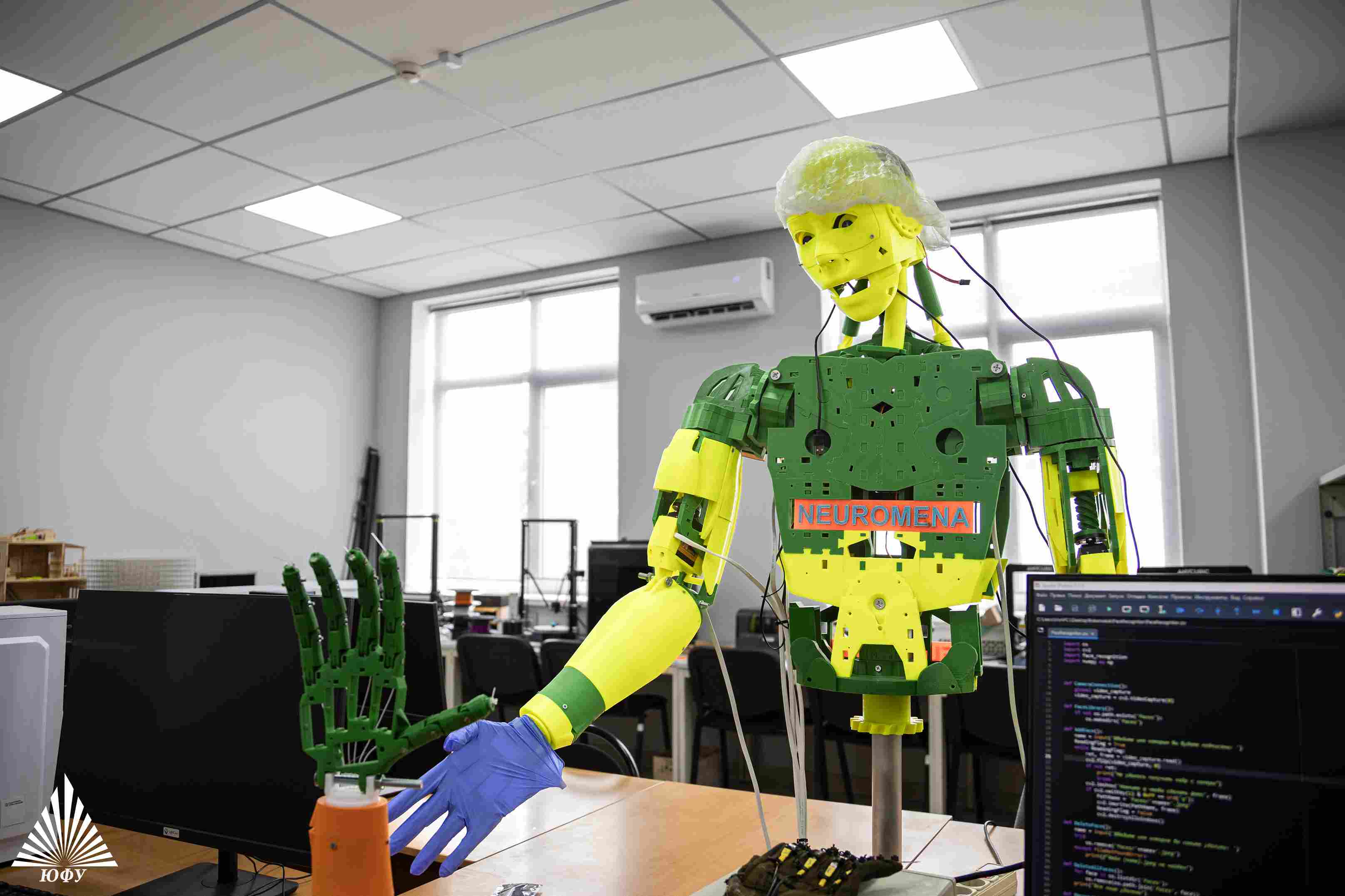 В таганрогском кампусе ЮФУ создали биоморфный робототехнический комплекс на основе перспективной компонентной базы и технологий, разработанных учеными лаборатории «Нейроэлектроники и мемристивных наноматериалов (Нейромена)». РТК является демонстратором разработок будущего Передовой инженерной школы «Инженерия киберплатформ», направленных на очувствление конечностей.