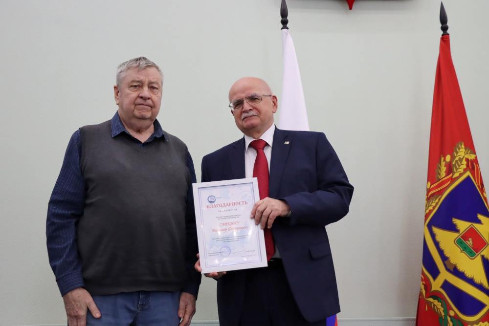 Председатель РО вручил Благодарности СоюзМаш России шести представителям машиностроения, работающим в АО «Карачевский завод «Электродеталь», «Завод «Снежеть» и « ГРУППА КРЕМНИЙ ЭЛ».