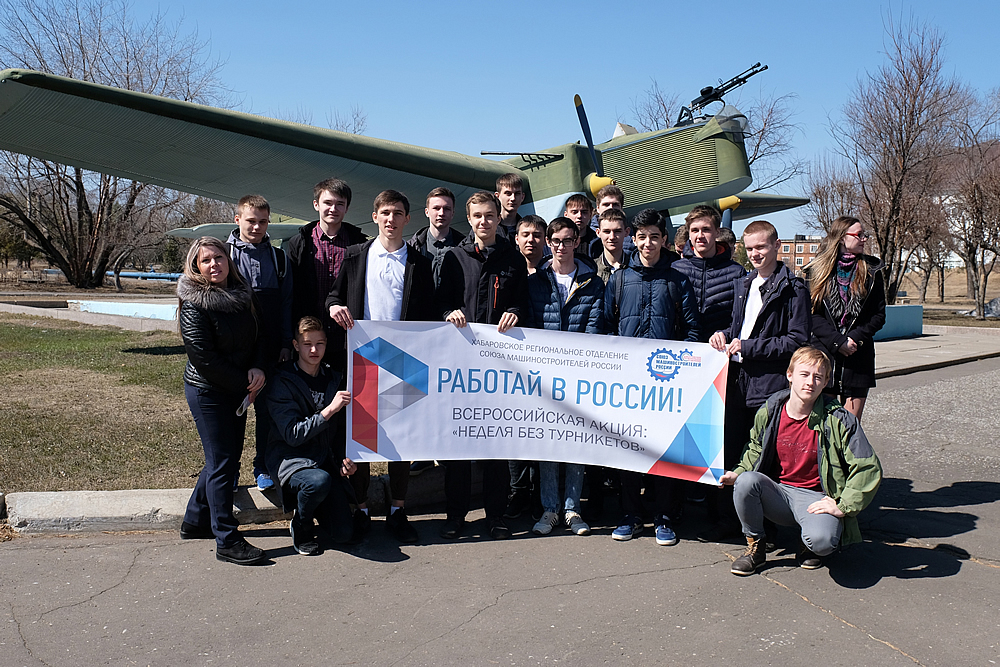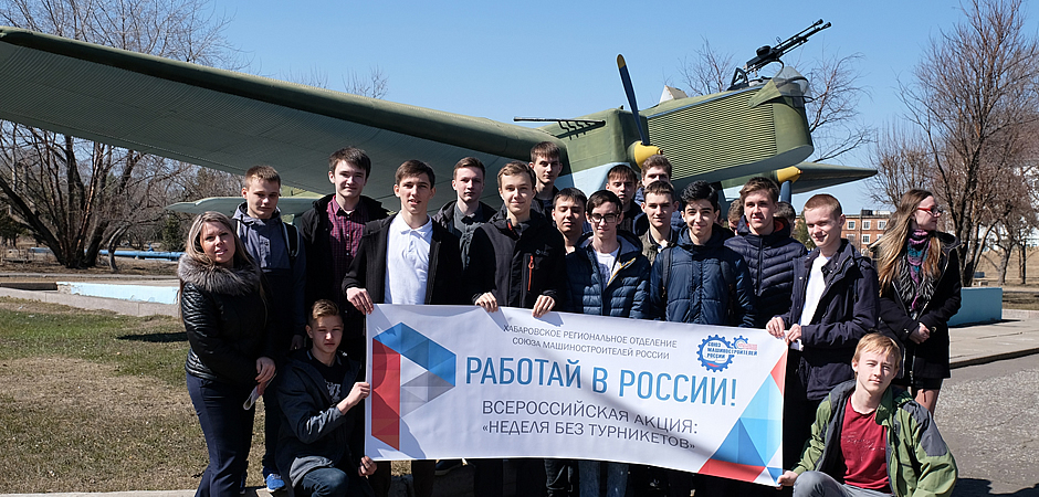 В рамках акции «Неделя без турникетов» Хабаровским региональным отделением Союза машиностроителей России были организованы посещения производственных участков предприятий Хабаровского края. В их числе Филиал ПАО «Компания «Сухой» «КнААЗ им. Ю.А. Гагарина», Амурский патронный завод «Вымпел», ПАО «Амурский судостроительный завод», Комсомольский-на-Амуре филиал АО «Гражданские самолёты Сухого» и ряд других. Мероприятия были организованы как для учащихся так и для преподавательского состава школ и вузов края.