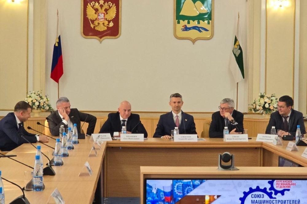 Заместитель председателя Комитета Совета Федерации по обороне и безопасности Сергей Муратов, вице-губернатор Курганской области Андрей Алексеев, генеральный директор Холдинга «Высокоточные комплексы», куратор Курганского отделения СоюзМаш России Олег Рязанцев и председатель Курганского РО СоюзМаш России, генеральный директор Курганмашзавода Игорь Гиске провели расширенное заседание регионального отделения СоюзМаш России.