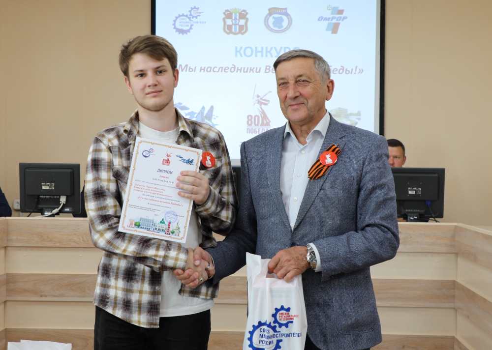 Сегодня в Омске наградили победителей и участников Конкурса видеороликов «Мы наследники великой Победы!». Организаторами Конкурса выступили Омское РО Союза машиностроителей России, Федерация омских профсоюзов, Союз работодателей Омской области, Министерство промышленности и торговли Омской области, Министерство образования Омской области.